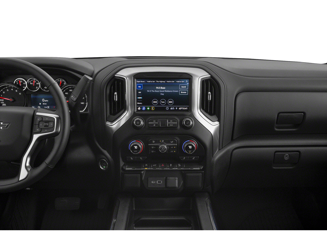 CONVENIENCE PACKAGE WITH BUCKET SEATS includes (A50) bucket seats, (D07) center console, (CJ2) dual-zone automatic climate control, (A2X) 10-way power driver seat including power lumbar, (KA1) heated driver and passenger seats, (KI3) heated steering wheel and (N37) manual tilt-telescoping steering column; Crew Cab models include (R7O) Cloth Rear Seat with Storage Package, CONVENIENCE PACKAGE II includes (UG1) Universal Home Remote, (A48) rear sliding power window, (KI4) 120-volt power outlet, (KC9) 120-volt bed-mounted power outlet, (IOS) Chevrolet Infotainment System with 8 diagonal color touch-screen with (MCR) USB ports, (U2K) SiriusXM Radio, (U2L) HD radio and (UVB) HD Rear Vision Camera Includes (UQA) Bose Premium Sound System.), LPO, OFF-ROAD ASSIST STEPS, BED PROTECTION PACKAGE includes (B1J) wheel house liners and (CGN) Chevytec spray-on bedliner, AUDIO SYSTEM, CHEVROLET INFOTAINMENT 3 PLUS SYSTEM 8 diagonal HD color touchscreen, AM/FM stereo, Bluetooth® audio streaming for 2 active devices, Apple CarPlay® and Android Auto® capable, voice recognition, in-vehicle apps, cloud connected personalization for select infotainment and vehicle settings. Dealer upgradeable to embedded navigation. Subscription required for enhanced and connected services after trial period. ENGINE, 5.3L ECOTEC3 V8 (355 hp [265 kW] @ 5600 rpm, 383 lb-ft of torque [518 Nm] @ 4100 rpm); featuring all-new Dynamic Fuel Management that enables the engine to operate in 17 different patterns between 2 and 8 cylinders, depending on demand, to optimize power delivery and efficiency (STD), TRANSMISSION, 8-SPEED AUTOMATIC, ELECTRONICALLY CONTROLLED with overdrive and tow/haul mode. Includes Cruise Grade Braking and Powertrain Grade Braking (STD), SEAT, CLOTH REAR WITH STORAGE PACKAGE 60/40 folding bench for Crew Cab models, includes seatback storage on left and right side, center fold out armrest with 2 cupholders, (includes child seat top tether anchor).