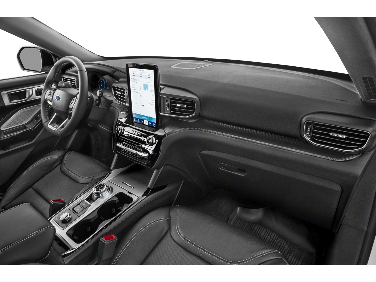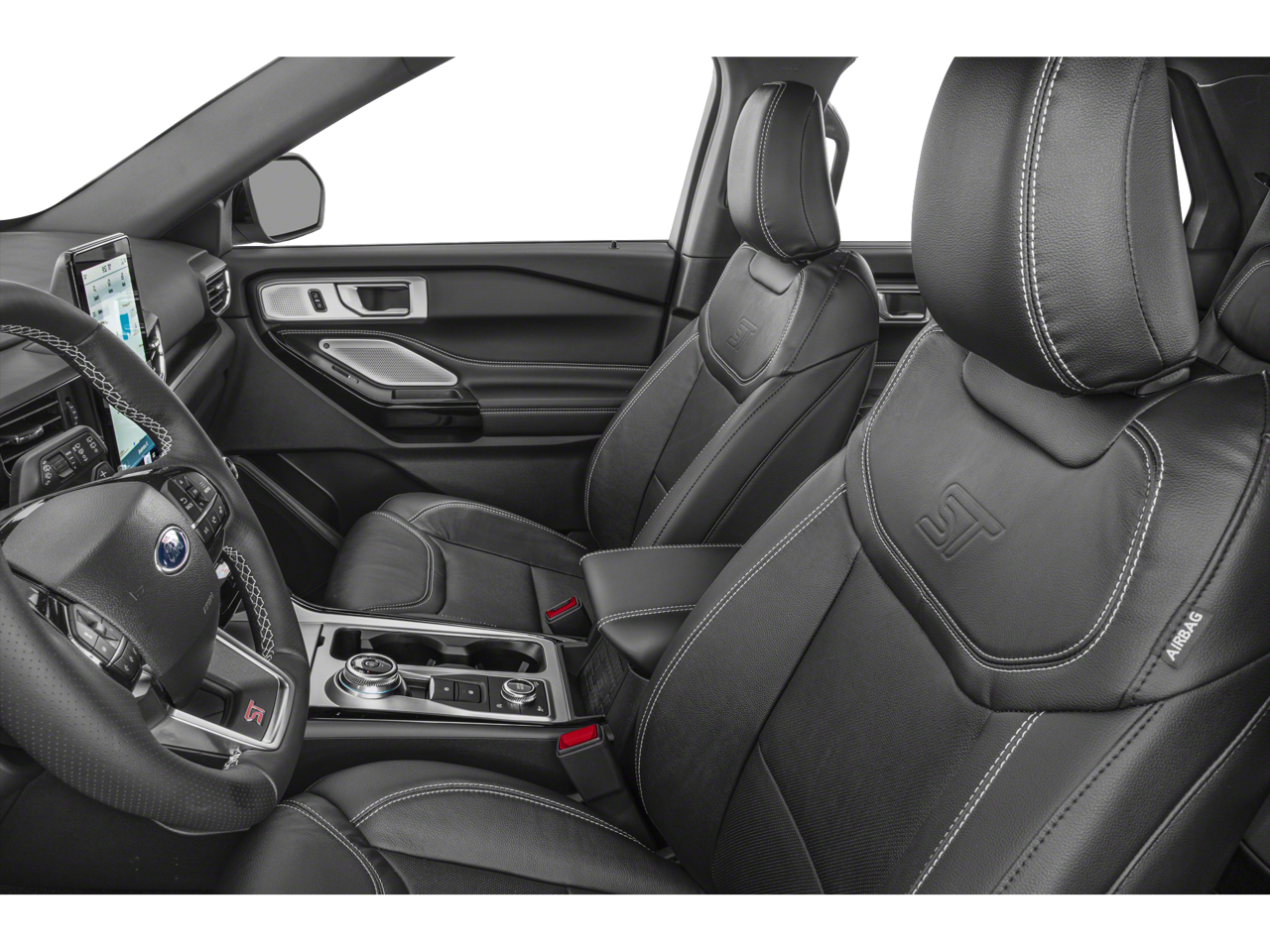 EQUIPMENT GROUP 401A ST High Package, ambient lighting, Memory Drivers Seat, Power Tilt/Telescoping Steering Column, Front Rain-Sensing Wipers, Reverse Brake Assist, 360-Degree Camera w/Split View, Wireless Charging Pad, 110V/150W AC Power Outlet, Replaces the powerpoint port on the rear side of the center floor console, Radio: B&O Sound System by Bang & Olufsen, 12 speakers, subwoofer and HD Radio, Sideview Mirrors w/Gloss Black Caps, power-folding w/Autofold, power and heated glass, LED turn signal indicators, ST projection lamps, drivers side auto-dimming and driver and passenger side memory, Ford Co-Pilot360 Assist+, Speed Sign Recognition, Voice-Activated Touchscreen Navigation System, pinch-to-zoom capability, SiriusXM Traffic and Travel Link, Note: SiriusXM Traffic and Travel Link, TWIN PANEL MOONROOF remote control front windows (opens front windows from outside of the vehicle via the key fob), FRONT & SECOND ROW FLOOR LINERS (16B) standard front and second row carpet floor mats, TRANSMISSION: 10-SPEED AUTOMATIC (STD).