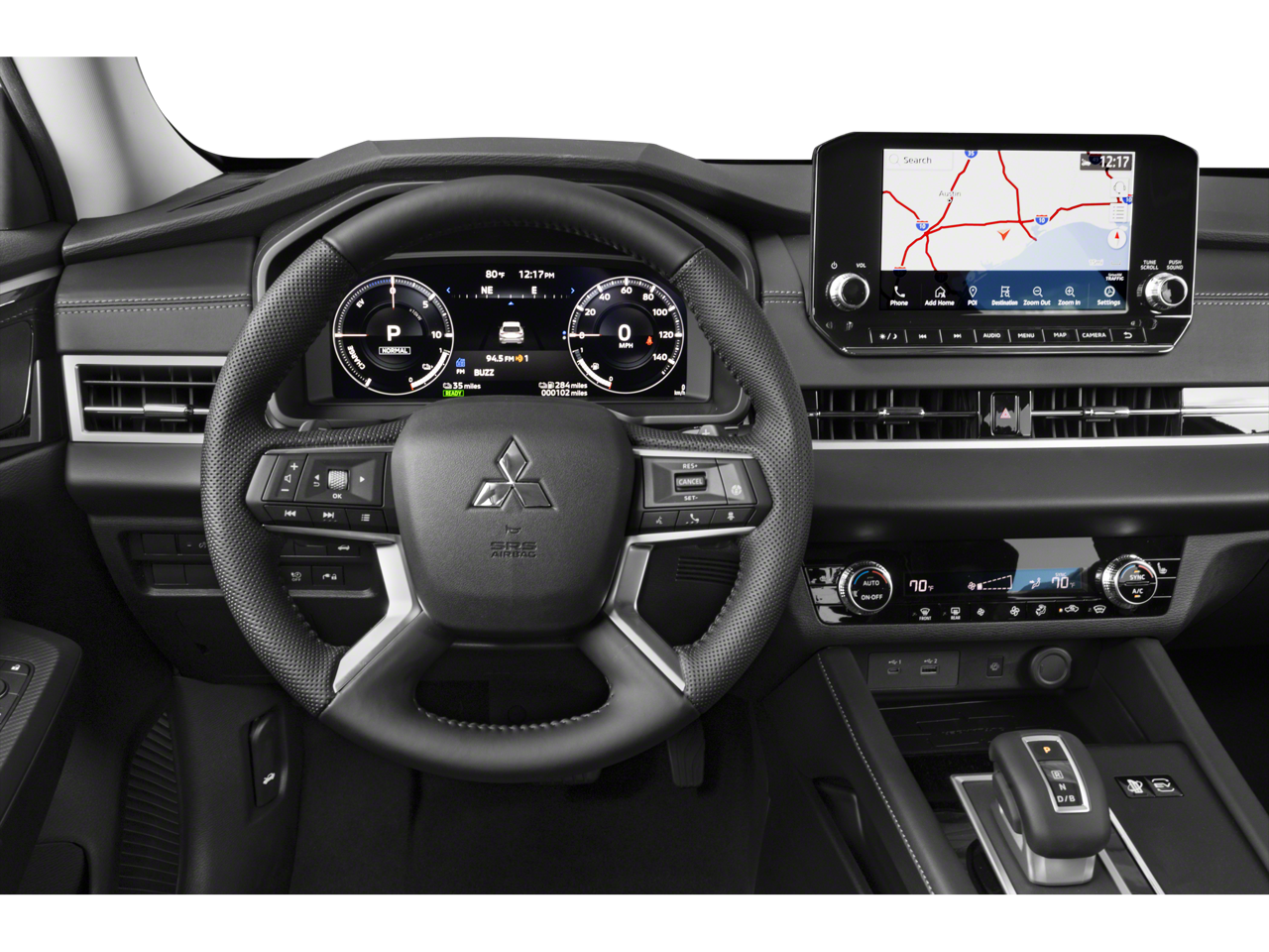 - Radio: AM/FM 9" Smartphone Link Display Audio -inc: navigation system, Apple CarPlay and Android Auto, SiriusXM satellite radio w/90 day SXM All Access and SXM Traffic and Travel Link subscription, HD Radio, Mitsubishi Connect w/safeguard and remote services and 24 month free trial (mobile app enrollment required), steering wheel audio and phone controls w/voice recognition, front USB-C and USB-A port, 6 speakers and Bluetooth wireless technology